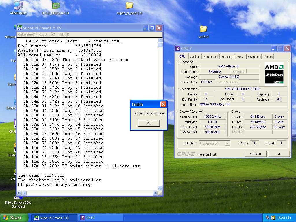 | SuperPi 8M | 13m 51.141s | 12m 22.703s |