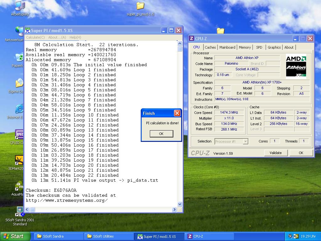 | Prozessor | AMD Athlon XP 1700+ (Palomino), FSB266 | Ja |